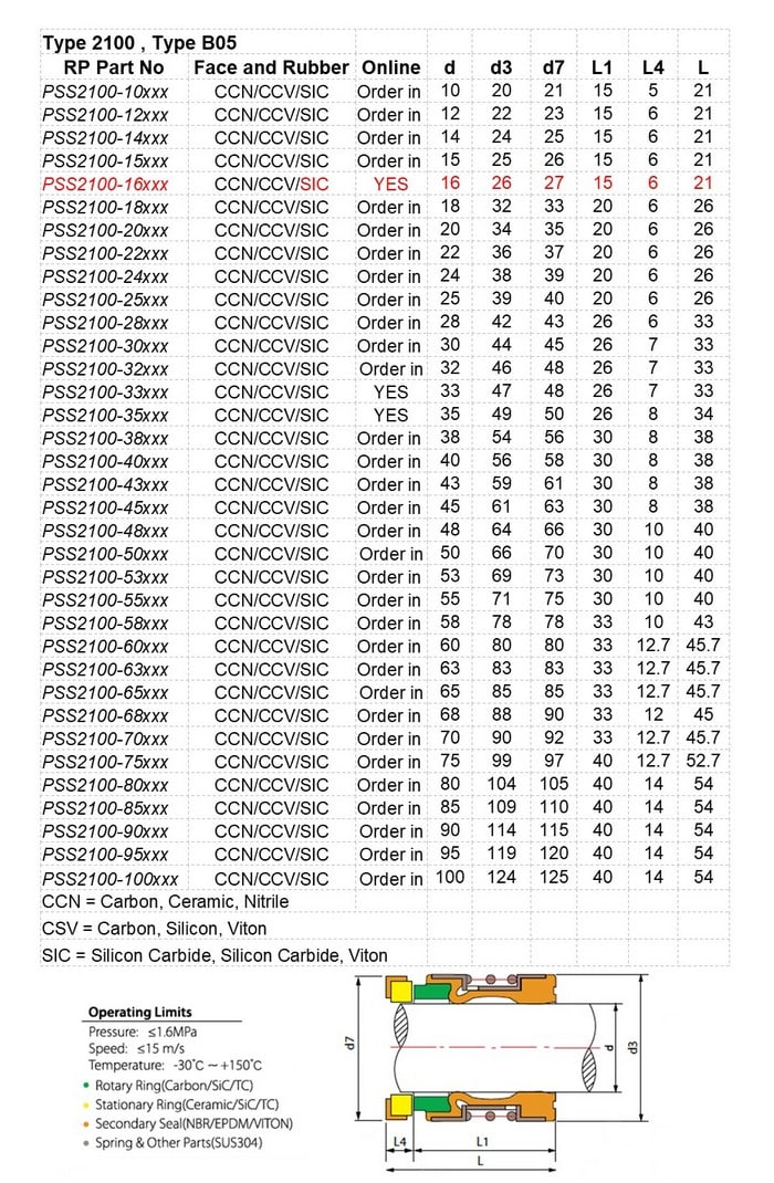 Equivalent to Davey 48801SP, pump mechanical seal Type 6, Type 16, B04 to suit 5/8″ shaft with Nitrile Rubber seals and Carbon Ceramic faces