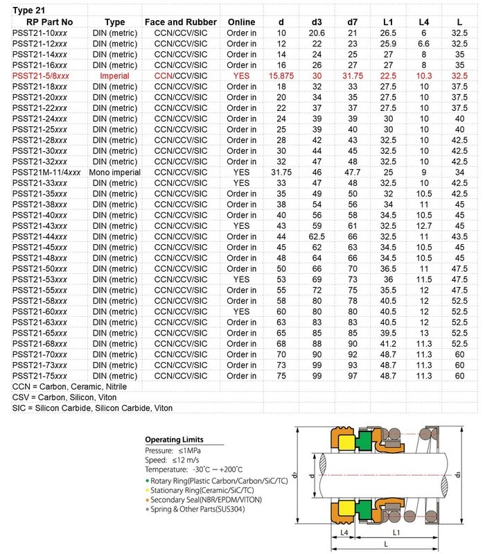 • Mechanical Seal T21 5/8″ Nitrile Carbon/Ceramic equivalent to Mono RV CP11 1050