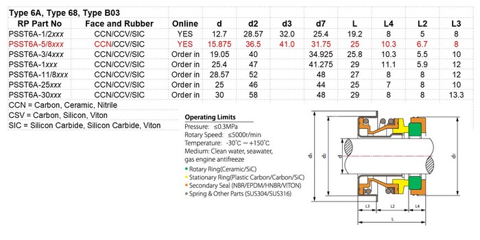 Equivalent to a Davey part 47863, pump mechanical seal Type 6A to suit 5/8″ shaft with high quality Nitrile Rubber seals and Carbon Ceramic faces